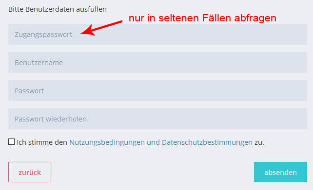 Hinweis: das Setzen eines Zugangspassworts empfehlen wir nur für Tippspiele, die Sie ausschliesslich für einen begrenzten Personenkreis durchführen möchten (z.B. nur für Mitarbeiter). Selbst hierfür ist dies aber nur in wenigen Fällen notwendig. Lassen Sie dieses Feld in der Regel also leer.
